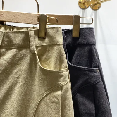 BI014 高磅數後腰圍彈性彎刀褲