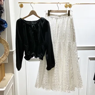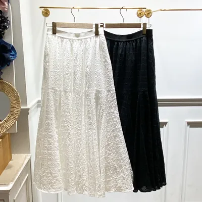 BI017 彈性腰圍傘狀布蕾絲長裙