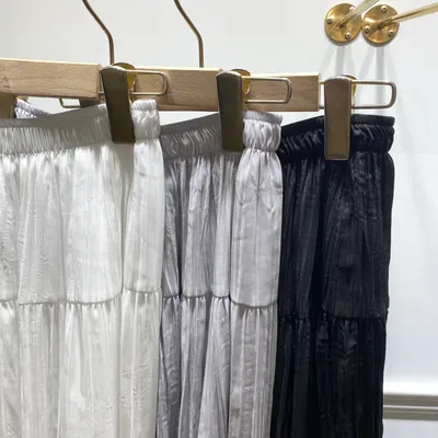 BK016 絲滑皺摺長裙
