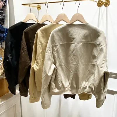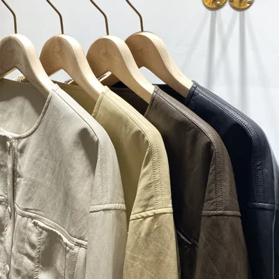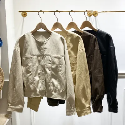 JI009 圓領排釦皮革外套