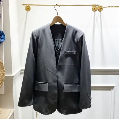 JI012 假兩件無領西裝外套