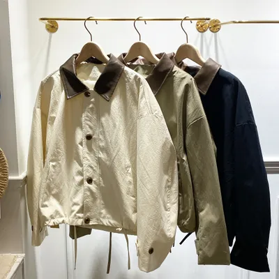 JJ009 下抽繩拼接皮革領夾克