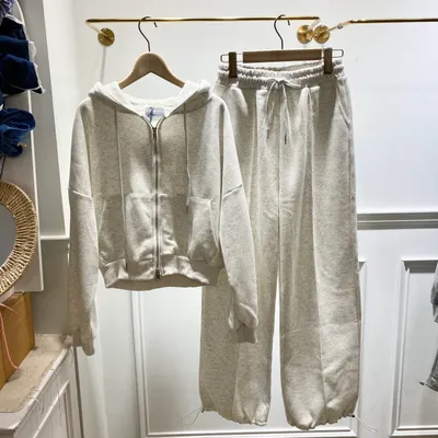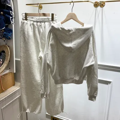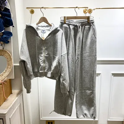OL006 太空棉連帽外套+褲腿縮口休閒褲套裝