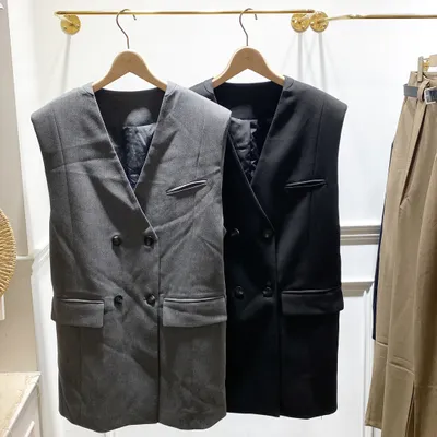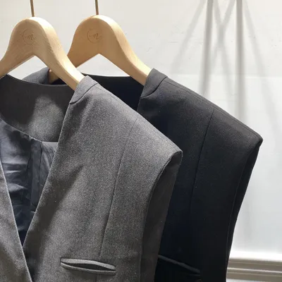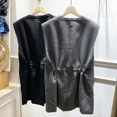 TI030 後腰可抽繩長版西裝背心(有墊肩)