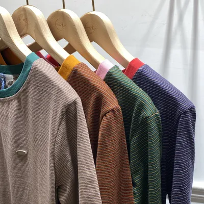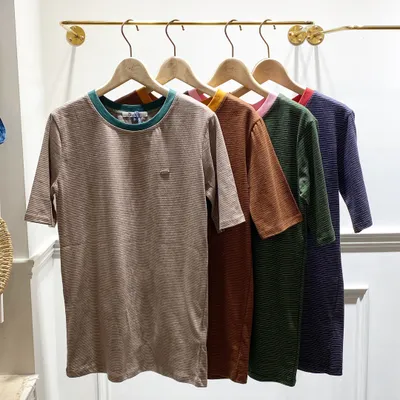 TI041 小銀標領口滾邊條紋T裇