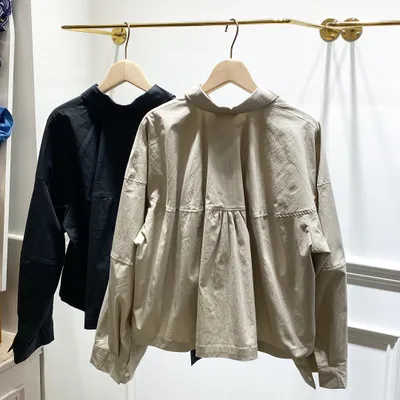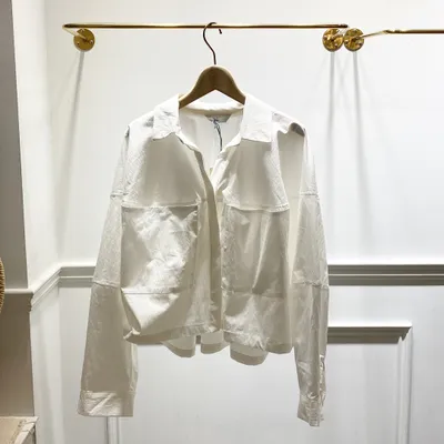 TI056 挺料胸前雙口袋短版襯衫