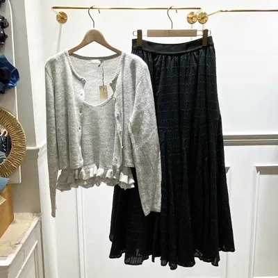 TJ004 毛料下擺荷葉背心+毛料外套兩件式