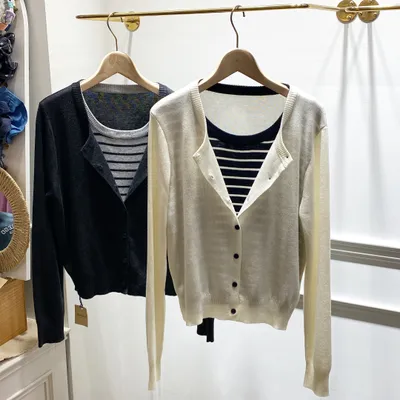 TJ007 假兩件針織上衣