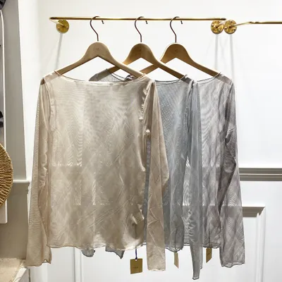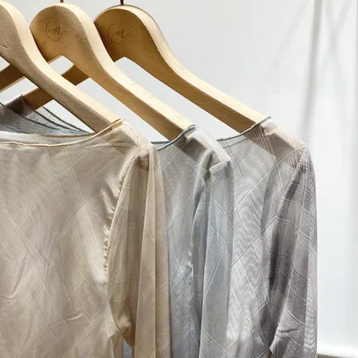 TK003 透膚格紋捲邊上衣