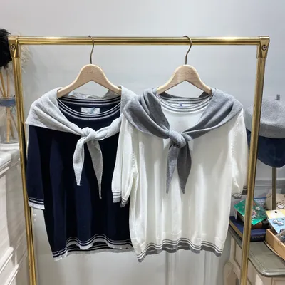 TC022 領巾+滾邊針織上衣2件套