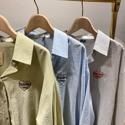 TC023 胸前口袋刺繡直條襯衫