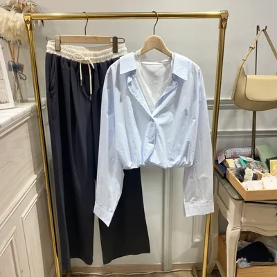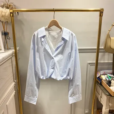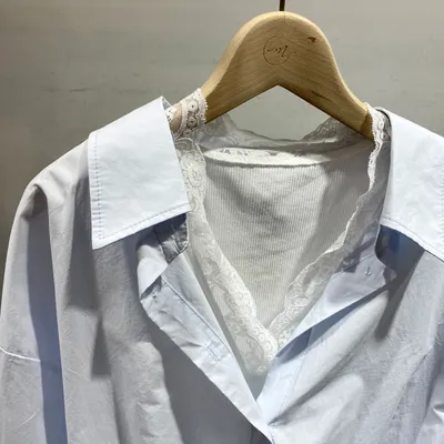 TC053 假兩件下擺縮口蕾絲襯衫