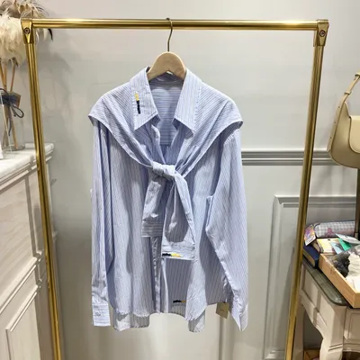 TC059 假兩件領口刺繡襯衫